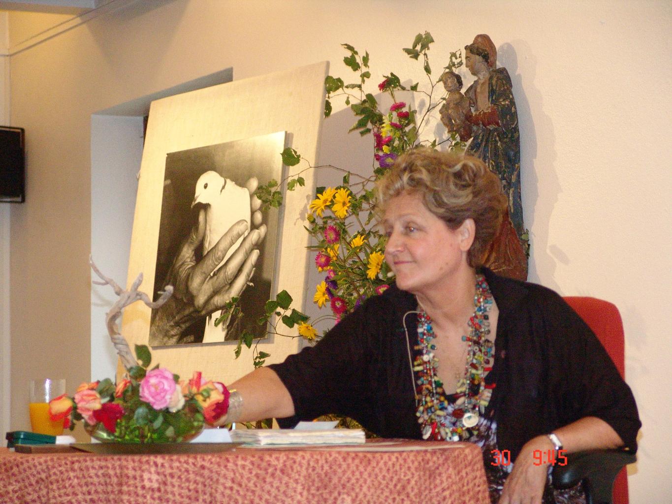After the death of Father Callerand, for whom she was the testamentary executor, she founded Éditions de la Roche d’Or (La Roche d’Or publications) and took on the task of publishing his work. From 2004 to 2015, she led retreats in La Roche d’Or and Fontanilles. She also took part in Father Roger Robert’s retreats in Fontanilles and inaugurated a new kind of retreat with him, where her intervention generated the profound task of integrating the word. In 2018, she resigned as moderator for the Community while continuing her work of publishing Florin Callerand’s works and her own work. In fact, she dedicated herself to passing on the charisma that’s so particular to la Roche d’Or, with a variety of new ways of engaging that sprung up around the community.